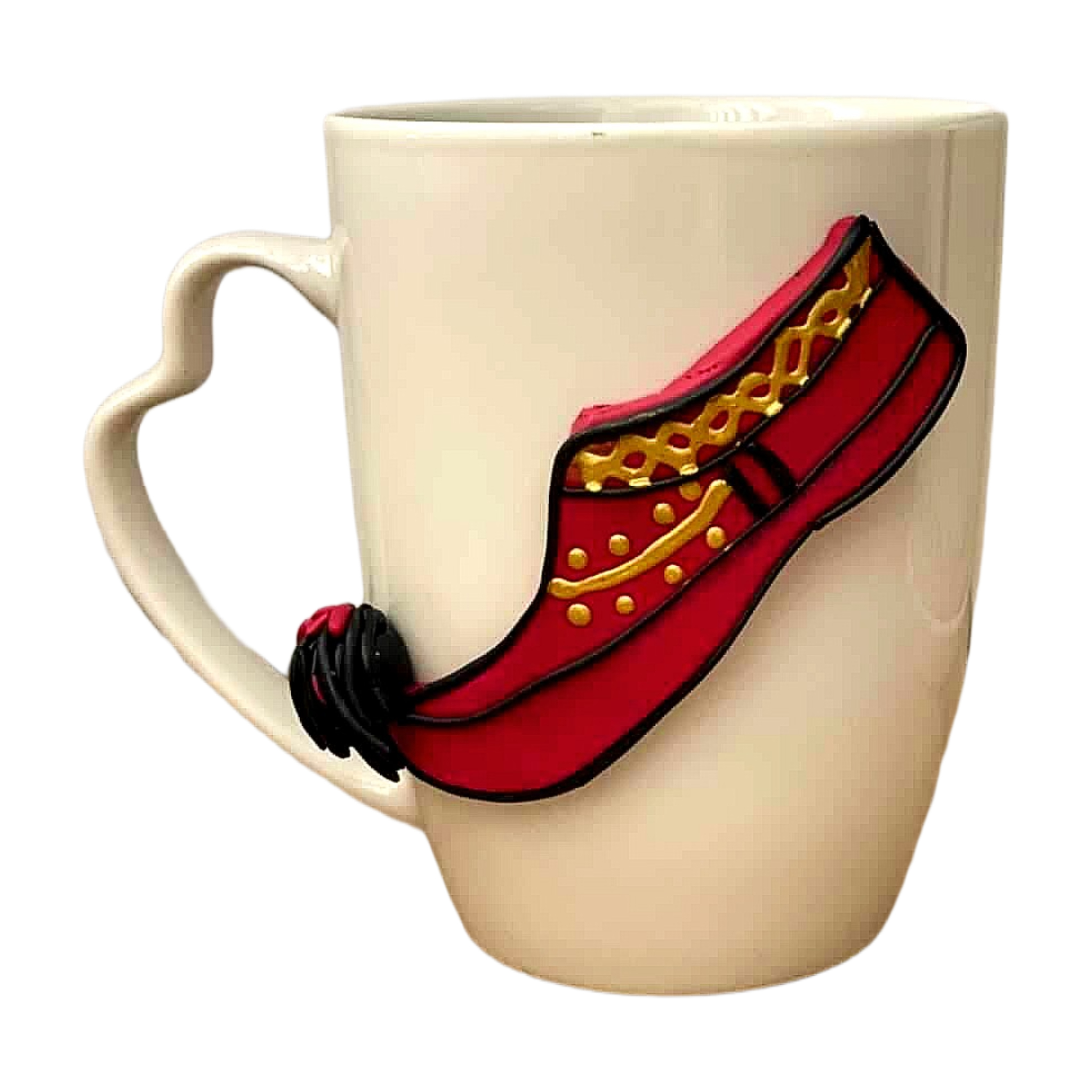 Mug decorated with an oping (shoes) from different parts of Albania.