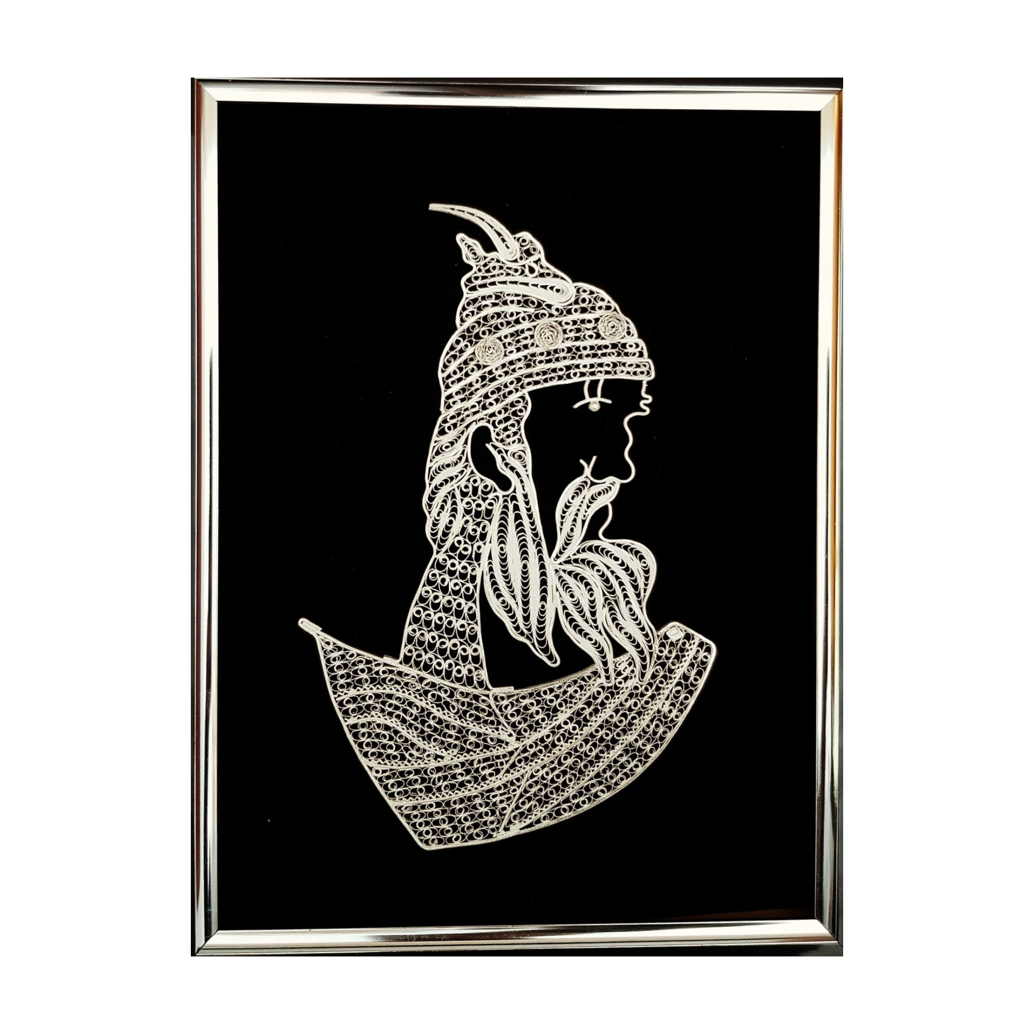 Figurine with the portrait of our national hero Gjergj Kastriot Skanderbeg. Paying attention to even the smallest details, this work is made of pure silver by filigree masters.