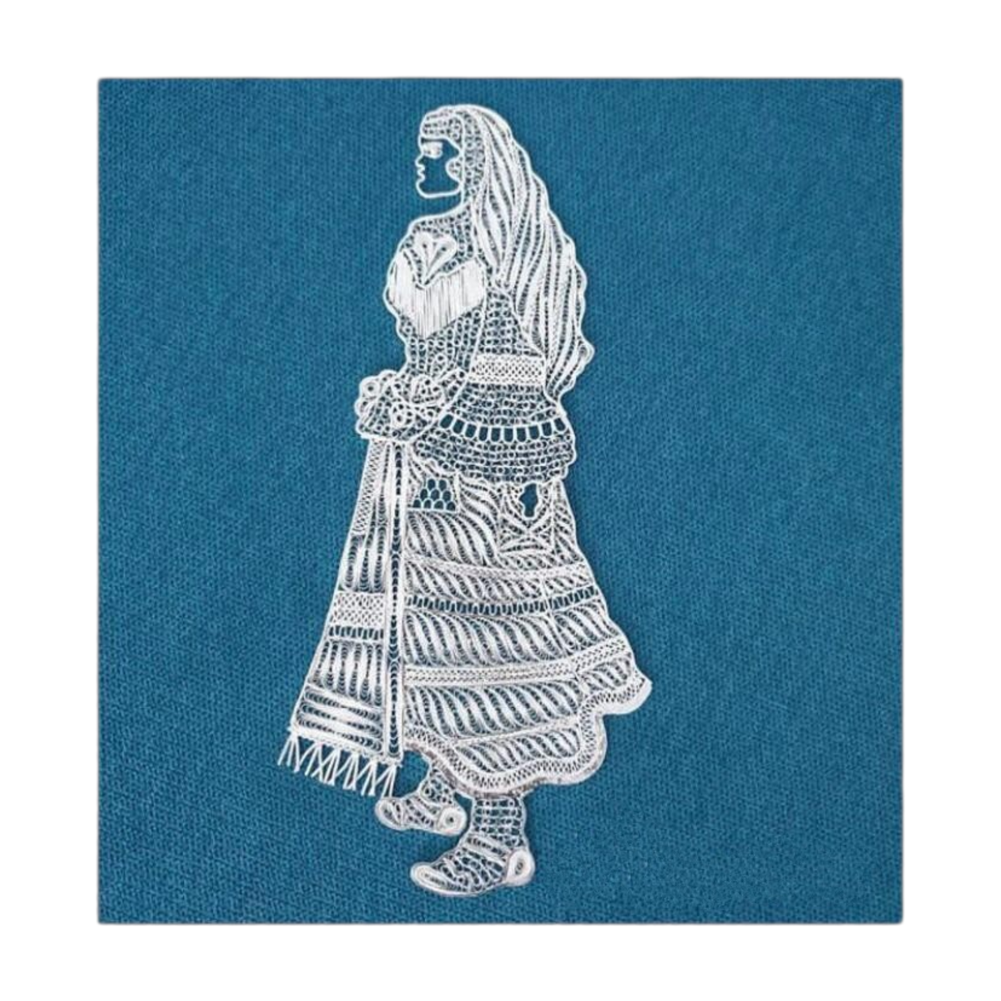 The filigree figurine depicts a highland woman wearing the 4,000-year-old national costume, the xhubleta.
