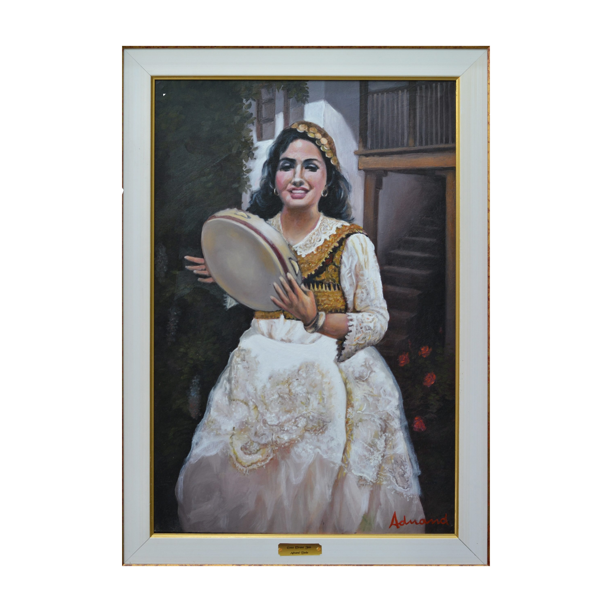 Painting entitled “Goca tiranse” where the traditional dress of the girl from the area of Tirana stands out.