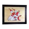 Wooden painting decorated with dancers dressed in the folk costumes of Southern Albania.