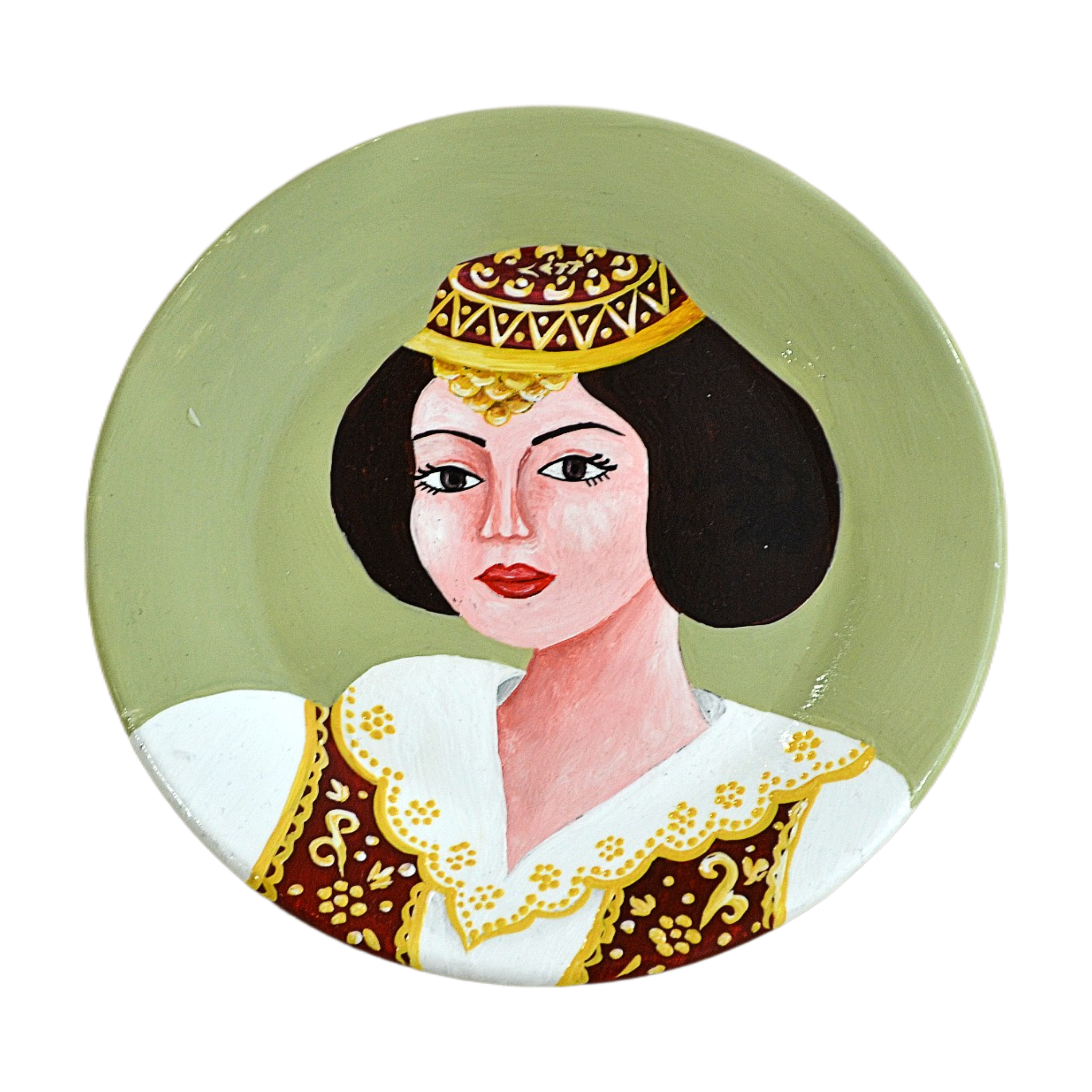 Ceramic decorative plate. In the decor, girls in traditional Tirana clothes stand out.