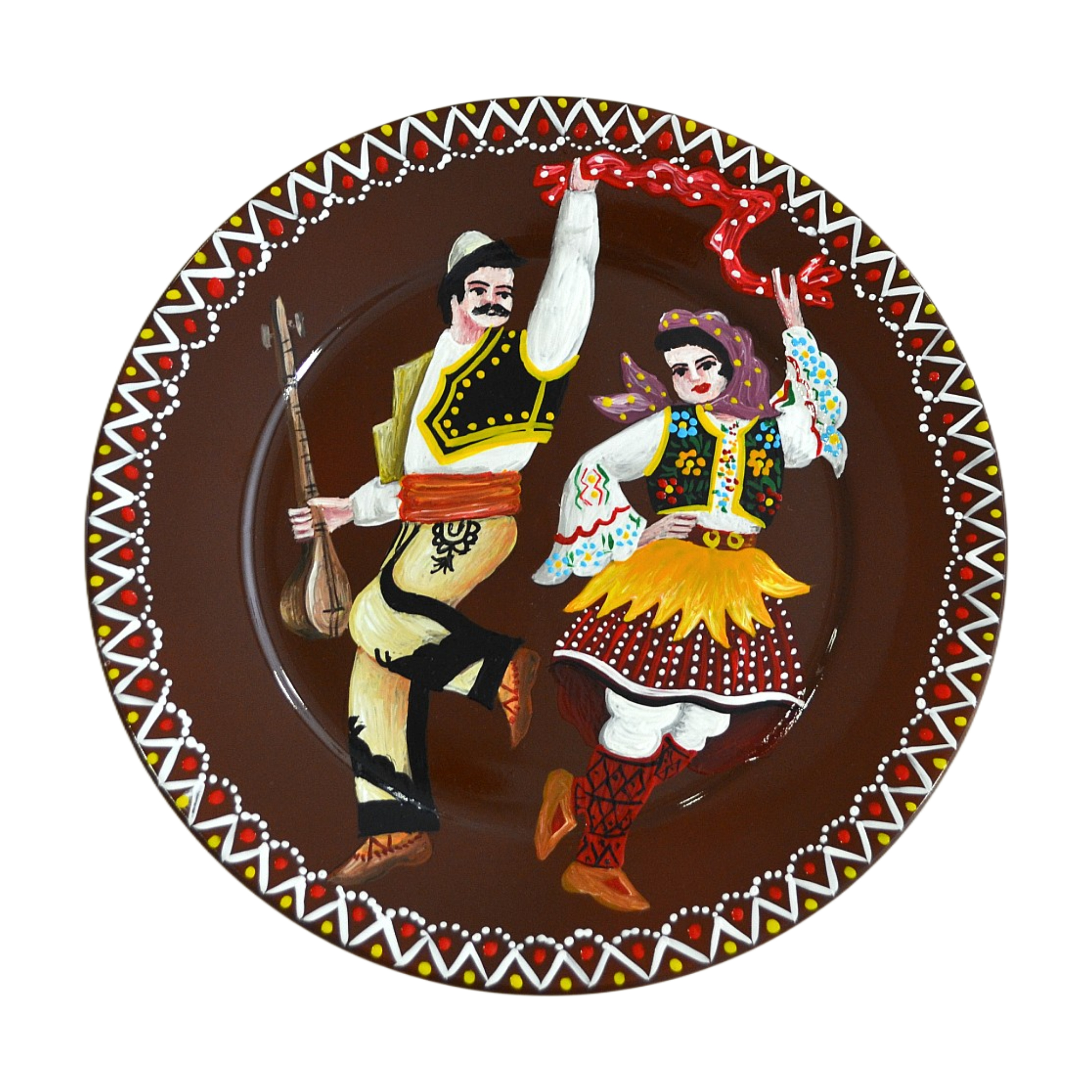 Ceramic decorative plate. In the decor are the couple of dancers in northern folk costumes.