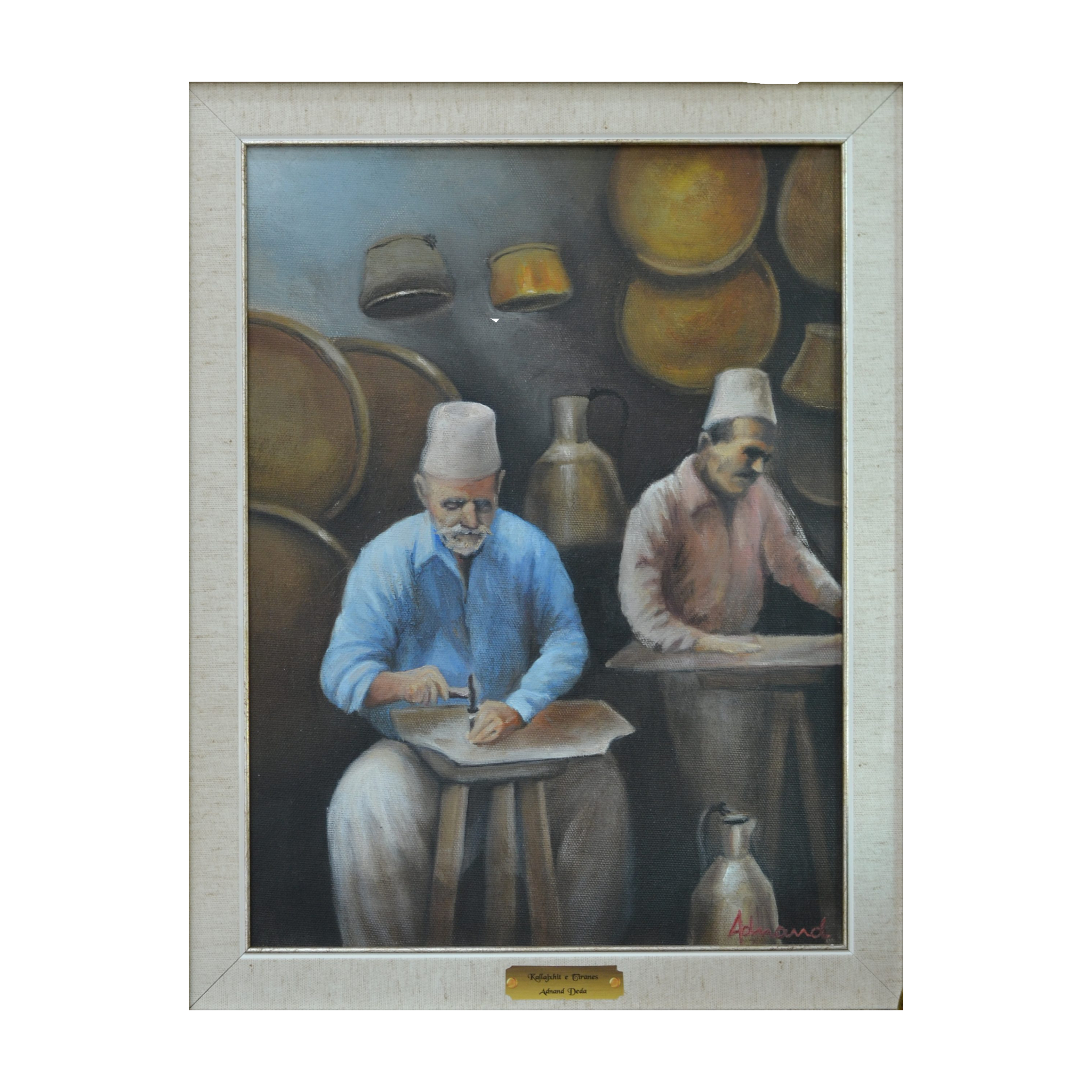 Piktura me titull “Kallajxhinjtë e Tiranës". Në sfond janë kallajxhinjtë e qytetit të Tiranës duke punuar.