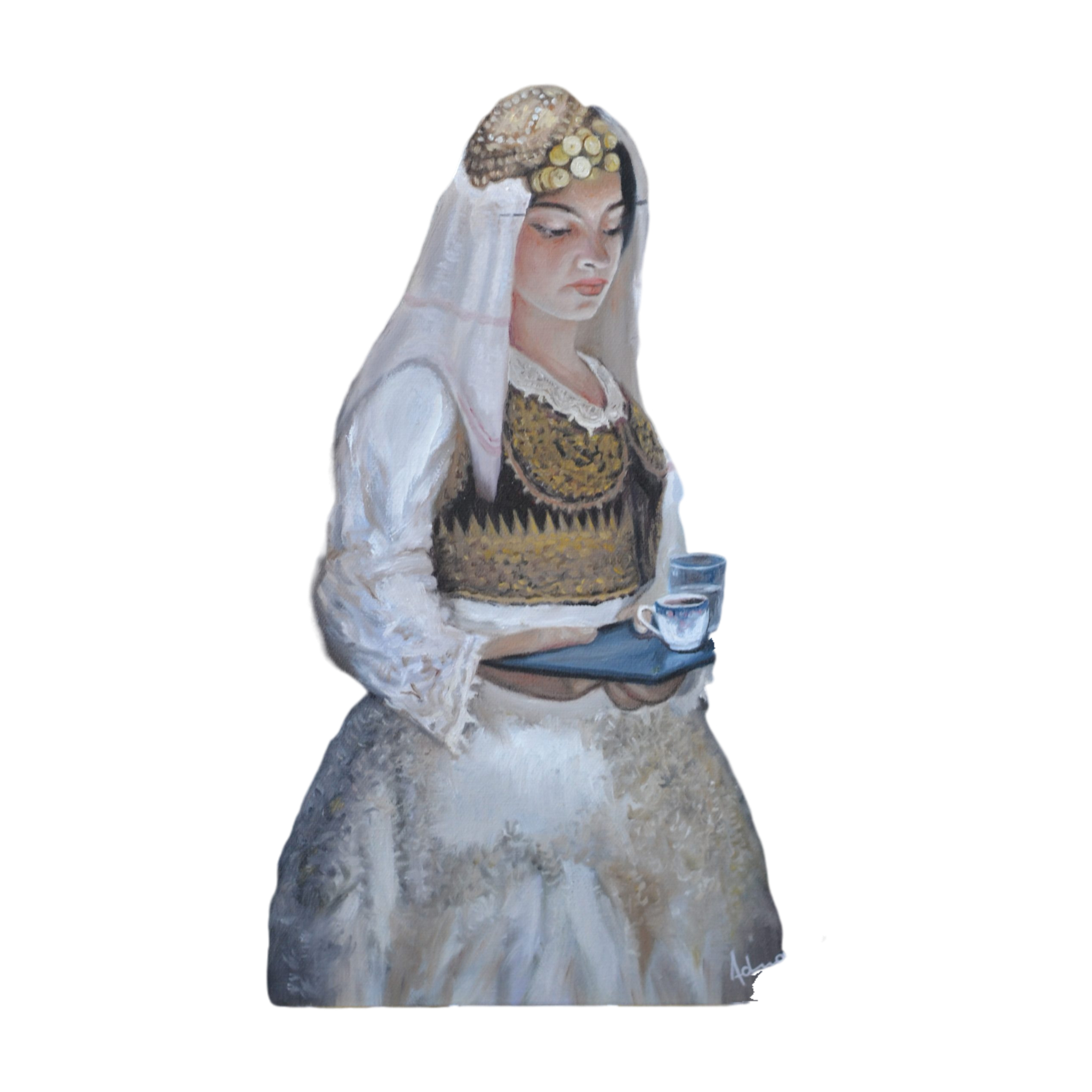 Piktura me titull “Nusja tiranse", ku bie në sy veshja tradicionale e vajzës në ditën e dasmës.