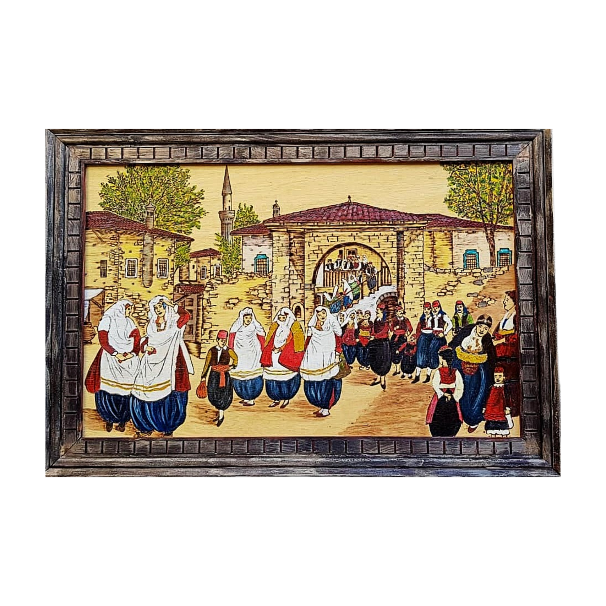 Inspired by the famous painting by master Kolë Idromeno “Shkodra Wedding", it comes made with wood burning.