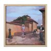 Gjurmë të rrugicave të Tiranës së hershme dhe motive jetësore brenda shesheve të një pikture.
