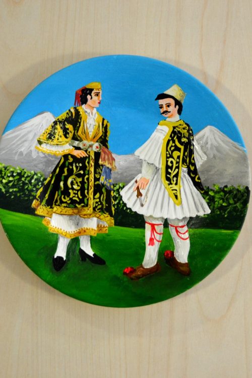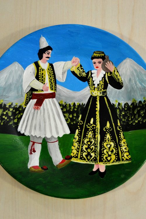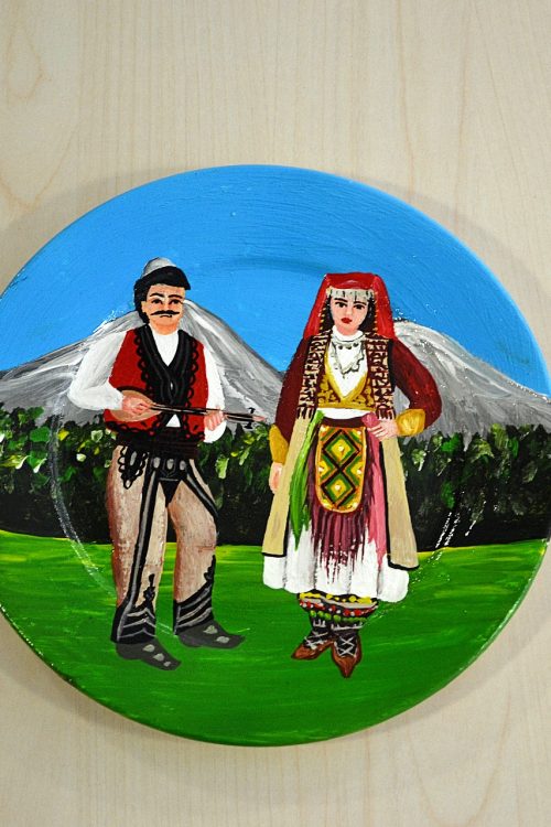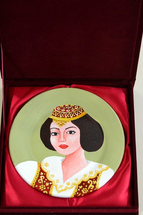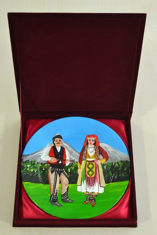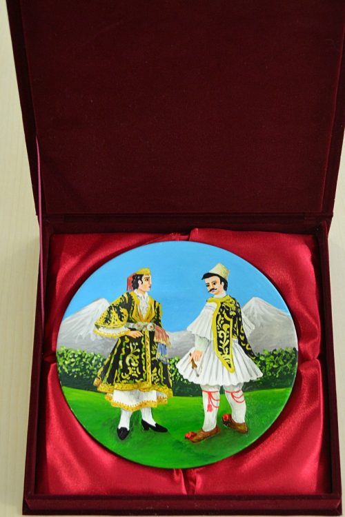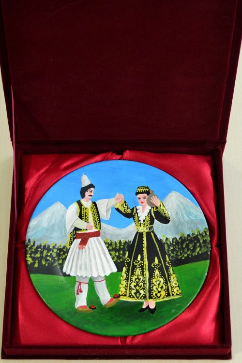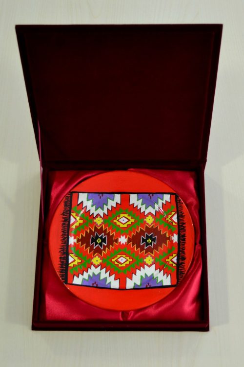 Pjatë qeramike me motivet e qilimit shqiptar në kuti